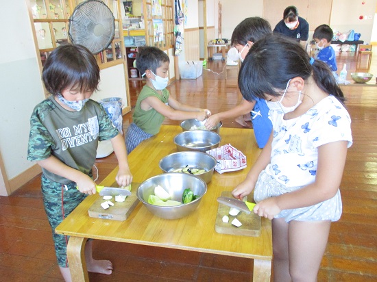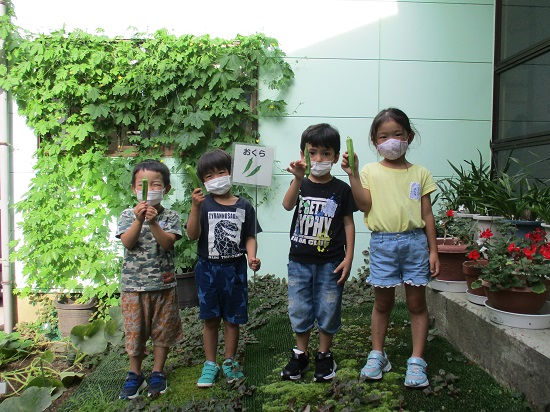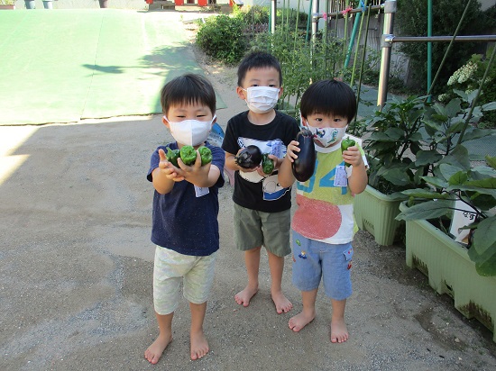 5月に植えた園庭の夏野菜がこんなに大きくなりました!