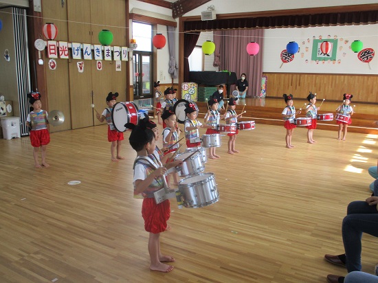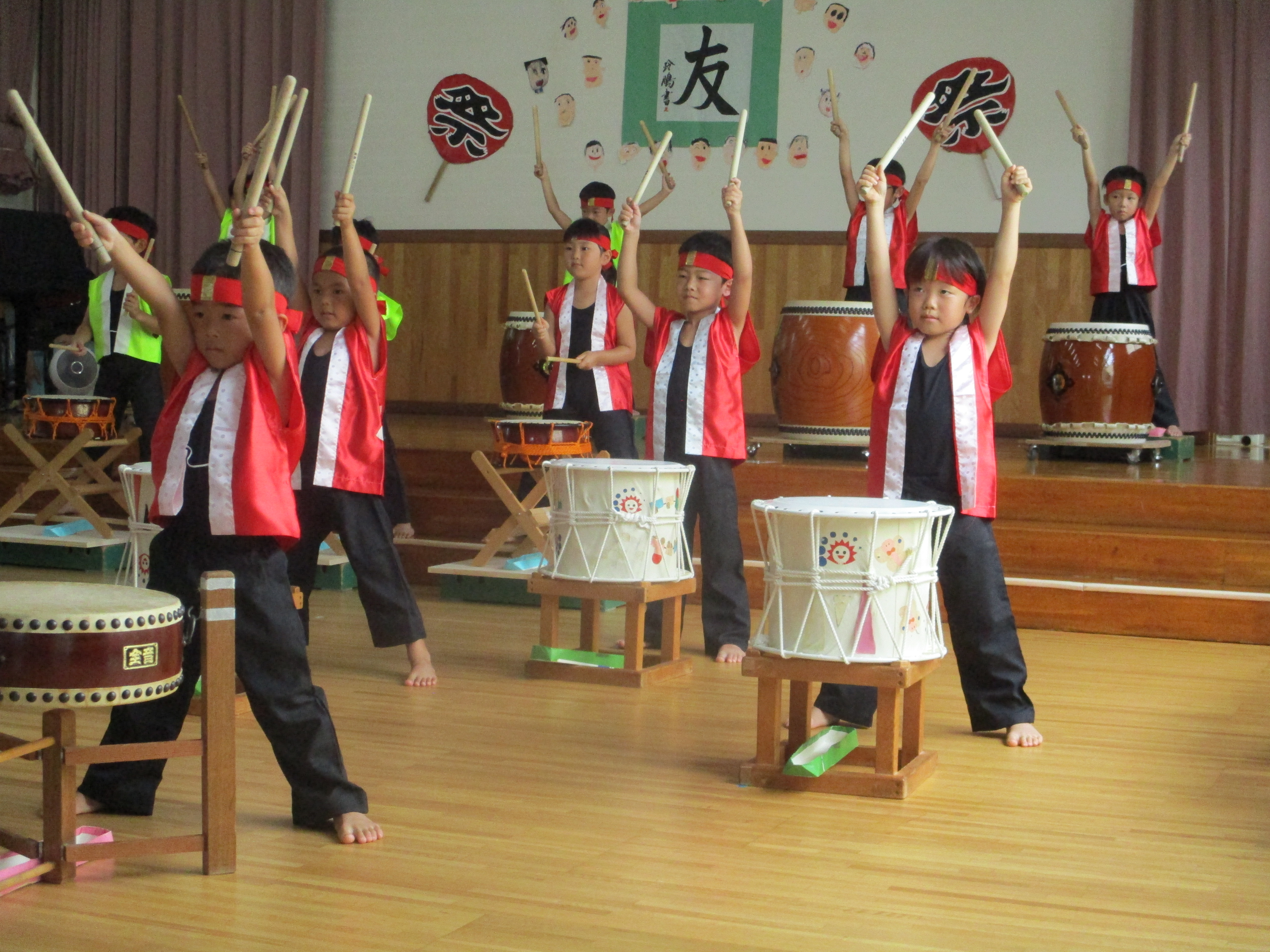 ふじ組(5歳児)は迫力ある和太鼓を演奏しました。