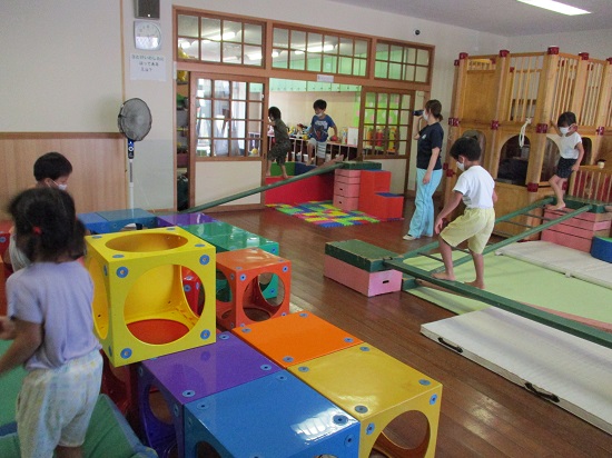 2人のお友だちが手をつないで遊んでいると、3人、4人…と増えてとても楽しいです。
