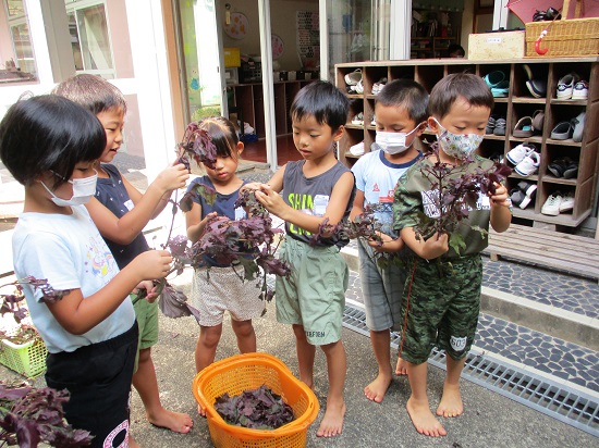 「おいしくなりますように」丁寧に葉っぱをとりました。