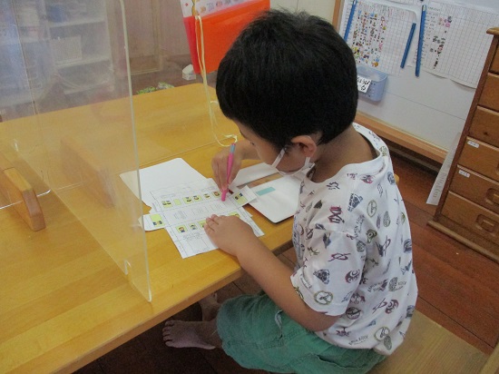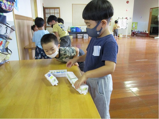 いくつ連結できるか挑戦し、線路を描いて走らせる子もいました。