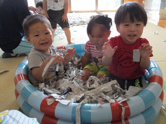 新聞プールに大はしゃぎ!!仲良く入って、気持ちよさそうだね。