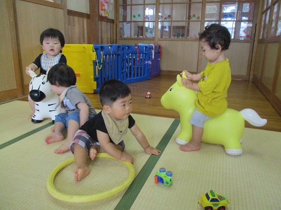 ロディにまたがりユラユラ。いろんな遊具、楽しいな。
