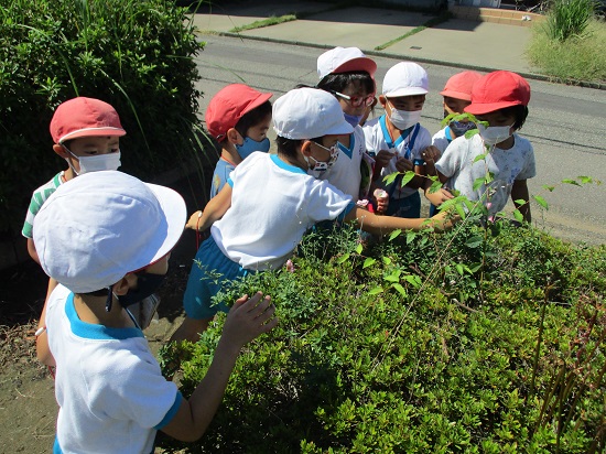 「これにしよう」「キレイな葉っぱあるよ!」「いいねー」と草花探し。