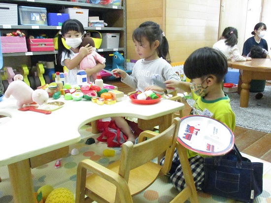 「赤ちゃん、おやすみ」「これお弁当!」と、まるでお母さんのようです。