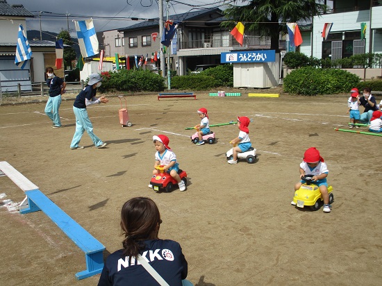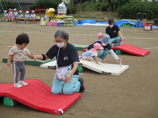 0.1.2歳児の運動会でした。保護者の方々が見守る中、