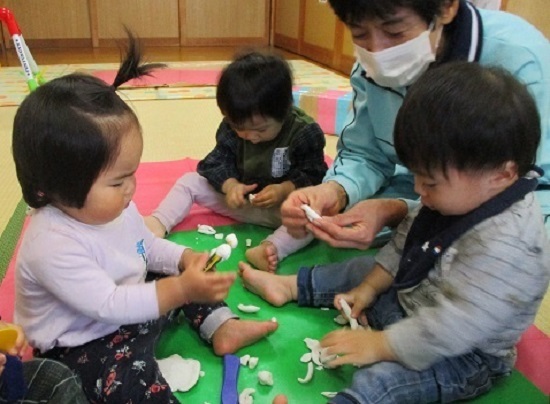 何?何?と興味を持って寄ってきました。粘土の感触も大丈夫!