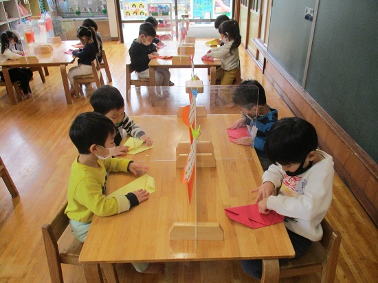 少しかたい画用紙に挑戦し、買い物ごっこに向けてさいふを作ります。