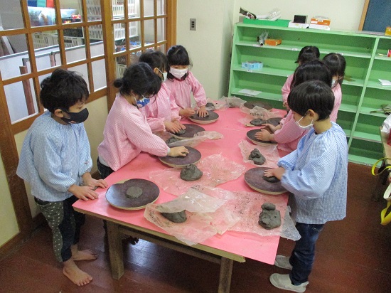高く積み上げるため、ひも状のねん土を作るのに苦戦していましたが、積み上げたあとは