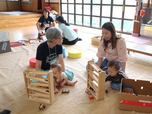 お家の人と一緒にコーナー遊びも満喫し、たくさんの笑顔があふれていました。