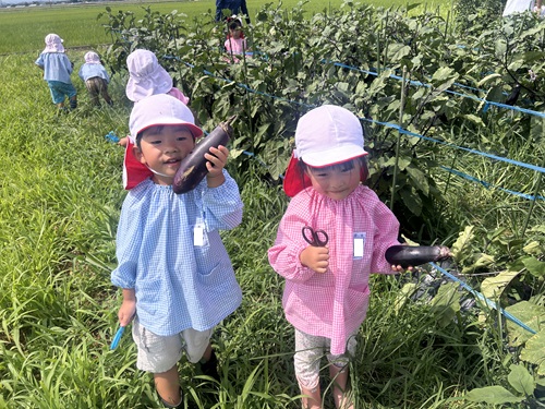 自分たちで取った夏野菜「食べるの楽しみ!」と給食が待ち遠しい様子です。