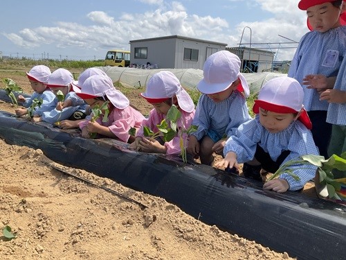 【芋苗植え】 春江の畑 6月5日 きく・ゆり・ふじ組