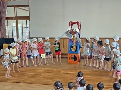 ふじ組がかっこいい宣誓と息を合わせてくす玉わりをしました。