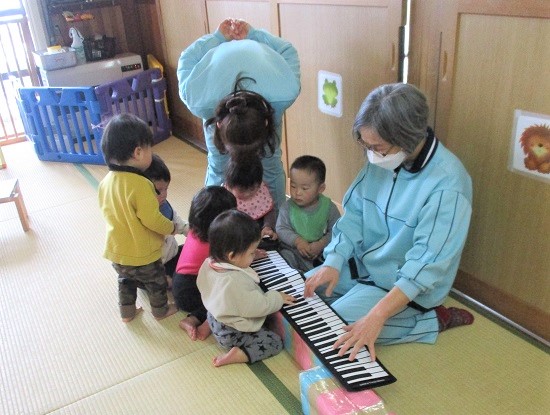 何にでも興味津々の子ども達はピアノを見るとすぐに寄ってきて、
