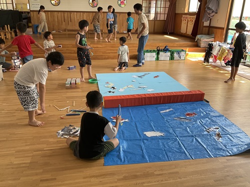 得意な泳ぎを披露したり、カードゲームなどのコーナー遊びを満喫しました。