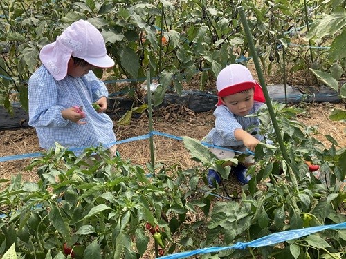 ナス、ピーマン、ミニトマト。硬いくきに悪戦苦闘しながらもたくさん収穫しました。