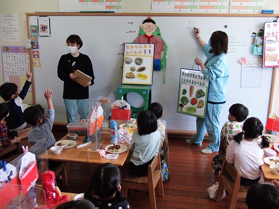 赤、緑、黄の食べ物。みんなしっかり覚えていました。