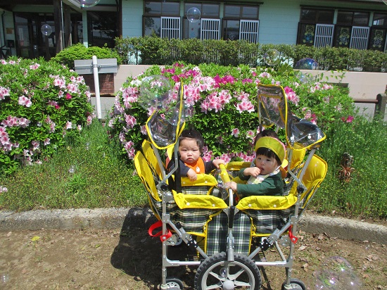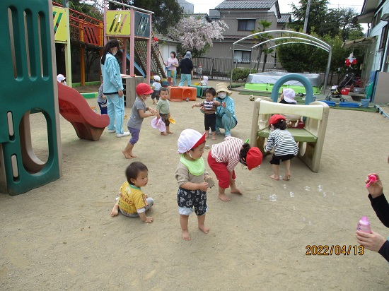 しゃぼん玉を追いかけたり、砂遊びをしたり。