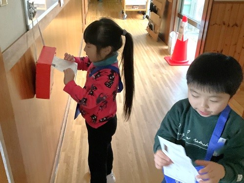 年長児は、郵便やさんの仕事もすっかり板についてはりきっています。