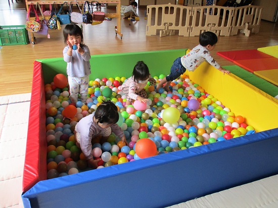 ボールをたくさん集めたり、スイスイ泳いだり、ボールプール大人気!