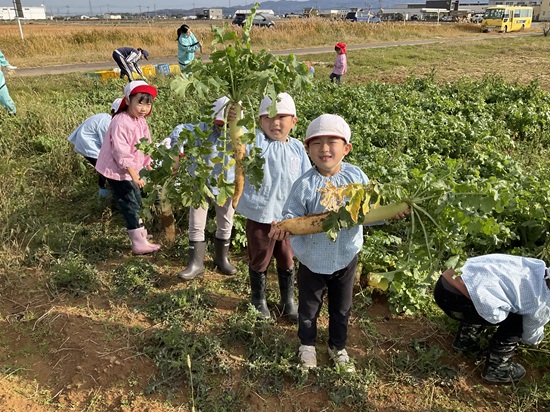 「今日はいっぱい大根とりたい!」と気合十分の子ども達。