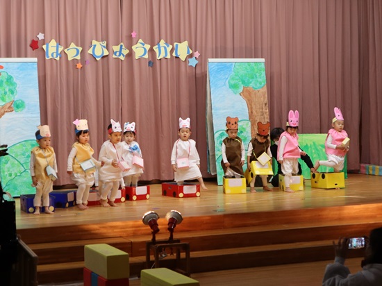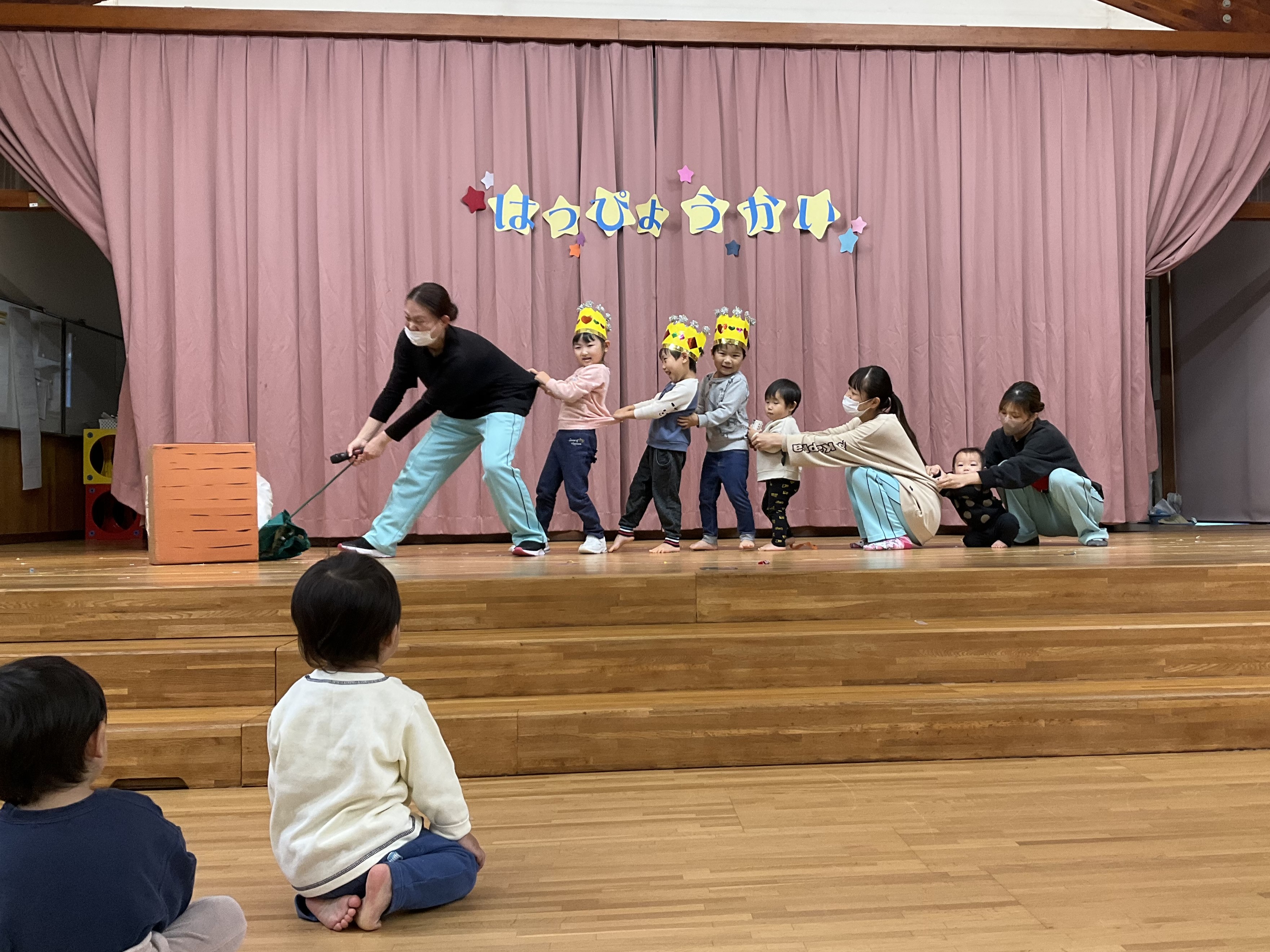 今月の誕生児はサプライズで先生と一緒に「おおきなかぶ」の劇に出演!