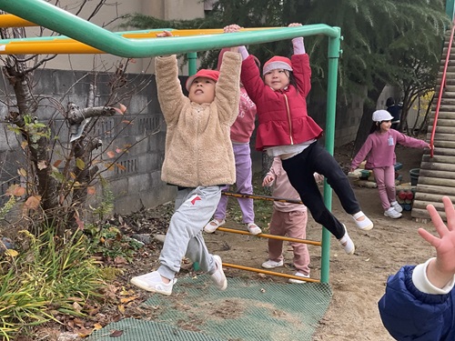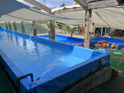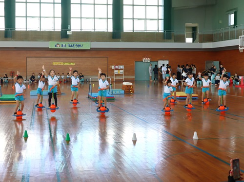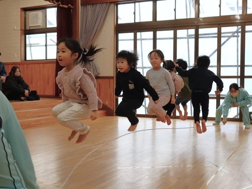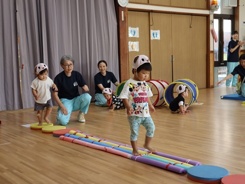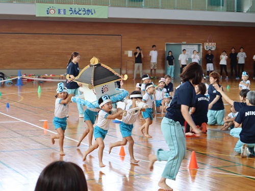 さかあがり ターンしながらスーイスイ(5歳児) とび箱 うんてい遠くまで行けるかな タイミングを合わせてジャンプ ネットくぐり上手でしょ(2歳児) 運動あそび(1歳児) 運動あそび(2歳児) 運動会(3~5歳児) たくさんとべたよ(5歳児) プール活動夏には、園庭のプールで水あそびやいろいろな泳ぎに挑戦します。